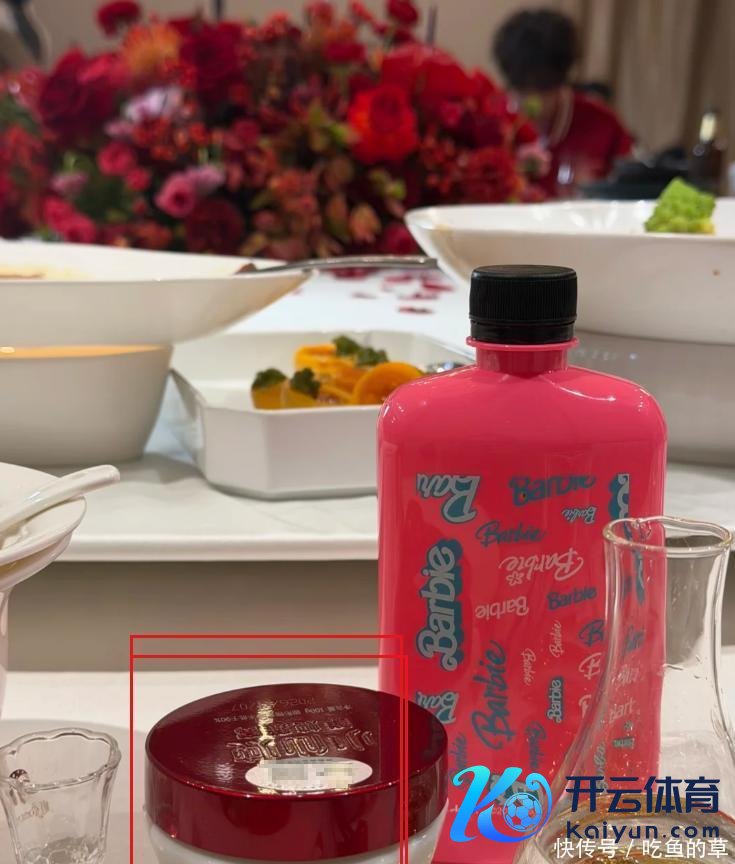 同期也曝光了饮宴现场的一些高等饮食,举例桌上的一个小粉瓶,这是宝露兹跟芭比65周年联名的一款矿泉水,一瓶就要20元傍边,如若是礼盒装价值在百元傍边。